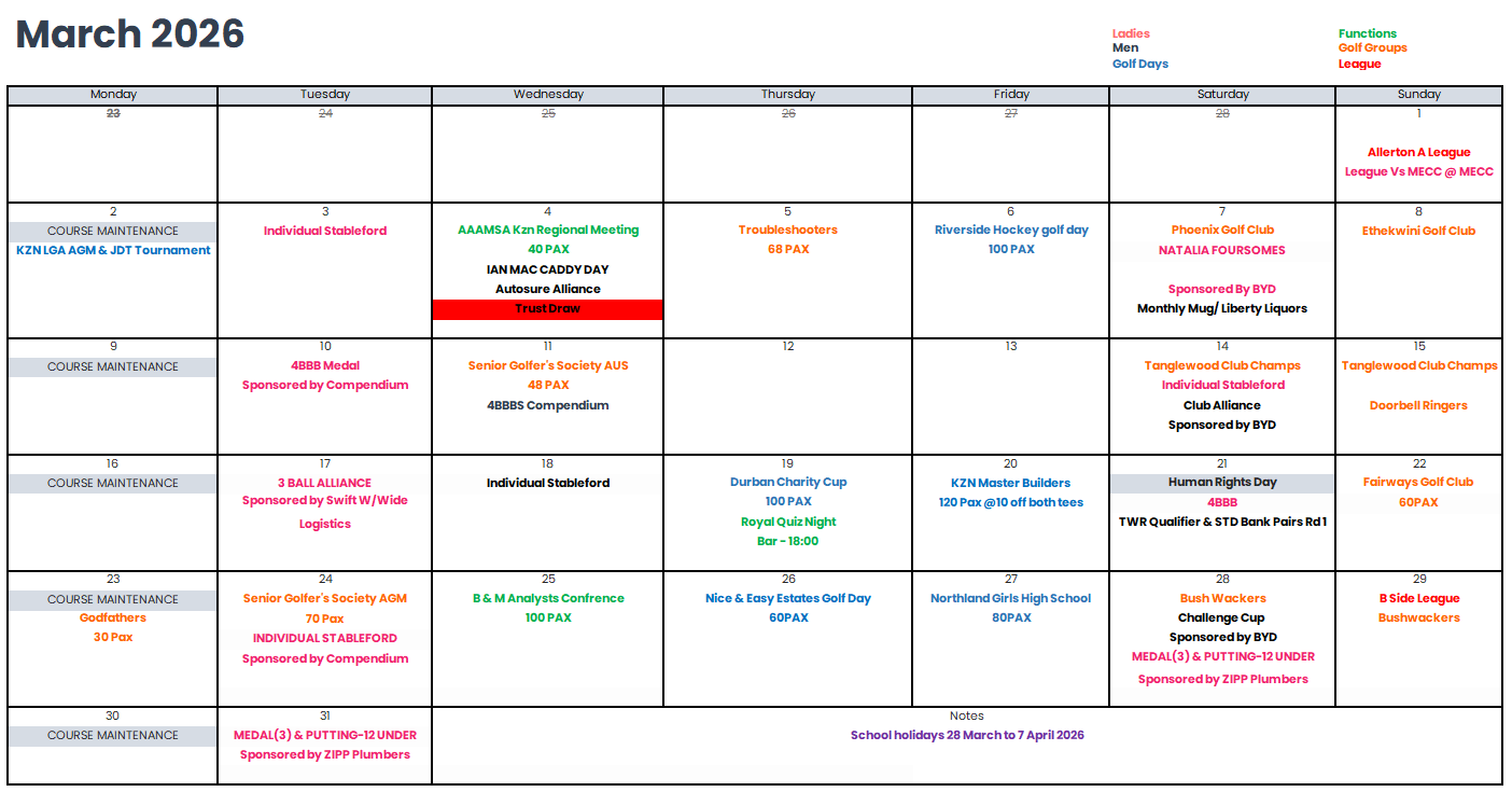 Events & Golf Day Calendar